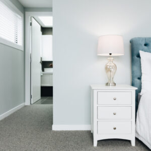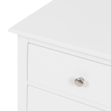 Construction Solid hardwood Acacia framing and MDF panels all coated in a durable satin smooth white finish. Quality drawer runners and satin stainless steel pulls (that can be easily removed and replaced with something more fun!).