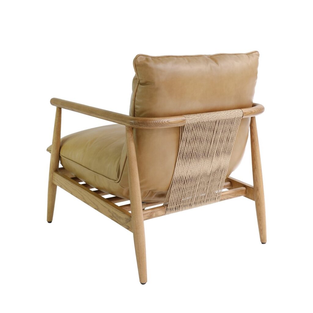 Materials: Leather upholstery, solid timber frame with woven cord detail